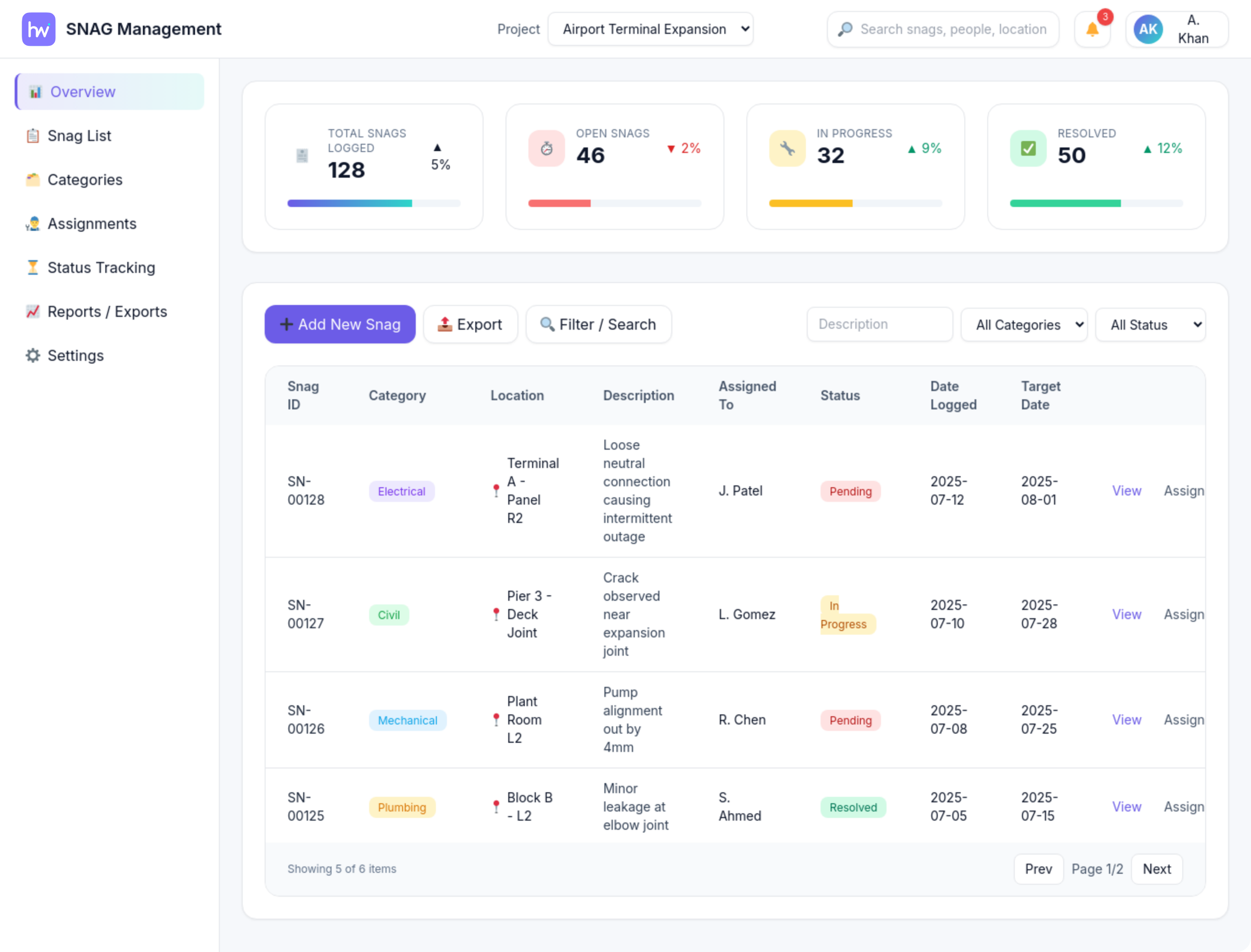 Discover the advanced capabilities that set HUMWORKS SNAG apart, empowering teams with powerful tools, intelligent workflows, and real-time insights to streamline defect management from start to finish.